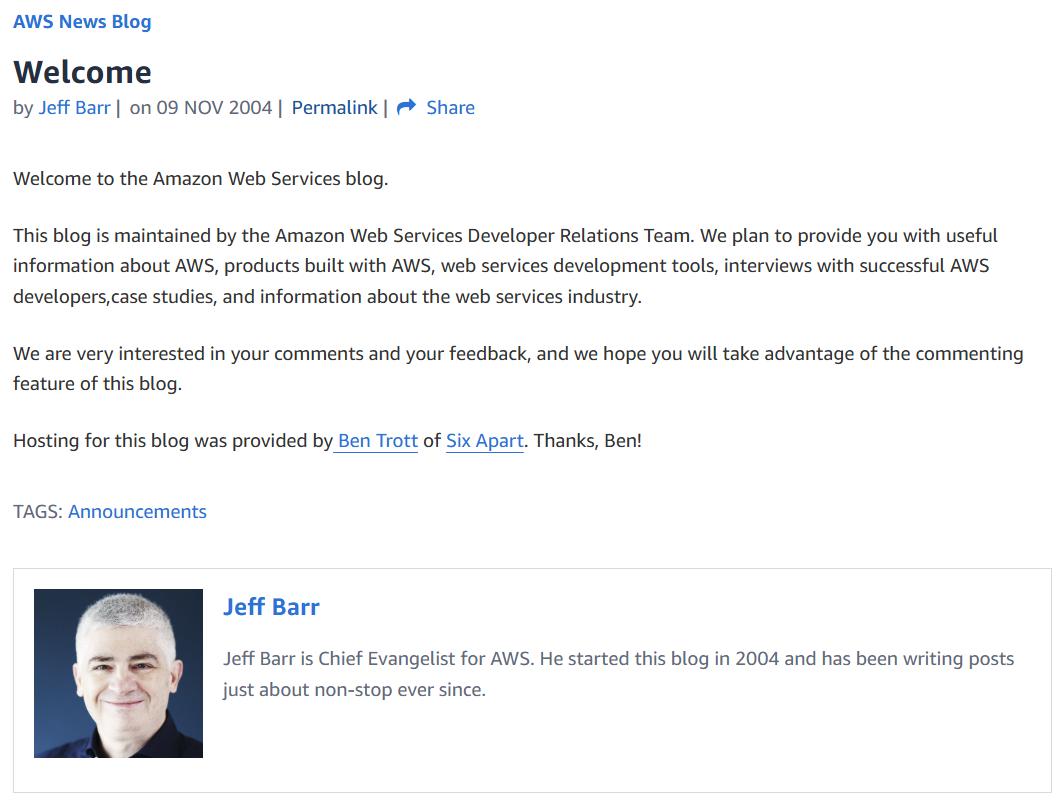 这个充满亚马逊风格的决策,最终开启了一个全新的营销门类。Jeff Barr的博客(AWS News Blog)正式上线,他以第一人称的开发者视角,亲自测试、撰写代码,发布了S3、EC2等早期服务。