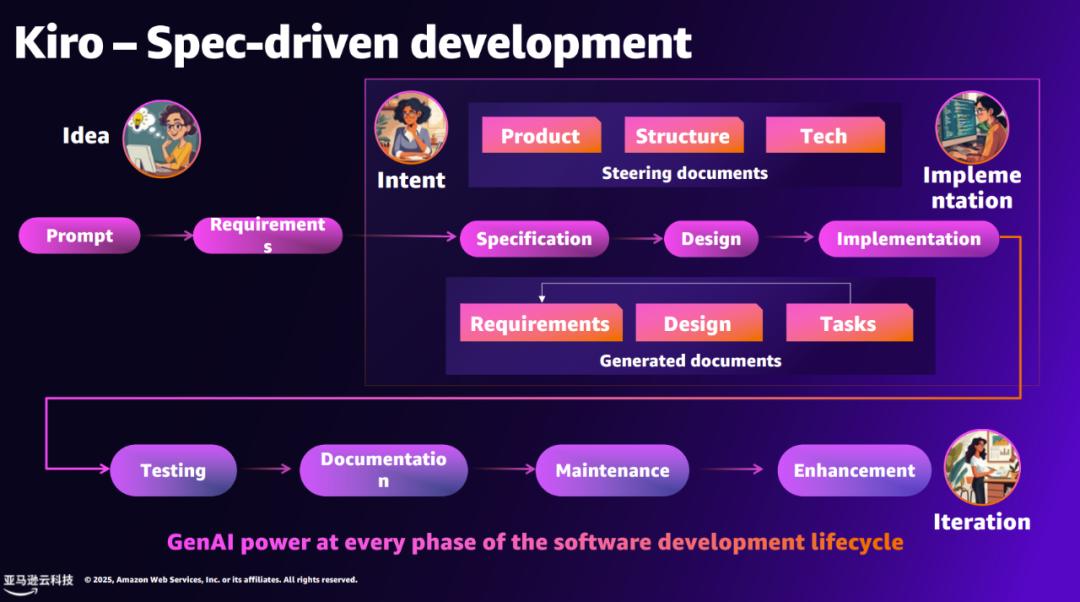 「我们称之为规范驱动的开发(Spec-Driven Development)。」他以此引出了亚马逊云科技的最新工具Kiro。在Jeff Barr看来,这代表了AI时代专业软件开发的未来。