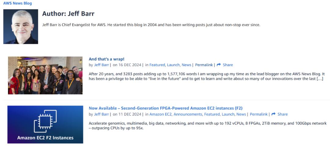 2025年初,Jeff Barr宣布他将正式退休,不再担任亚马逊云科技新闻博客的首席博主。这个消息标志着一个时代的落幕,但也更像是一次传承。